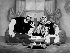 Σε περισσότερα από ένα καρτούν, η Όλιβ τον χτυπά, όμως αυτός δε σταματά στιγμή να την αγαπά.